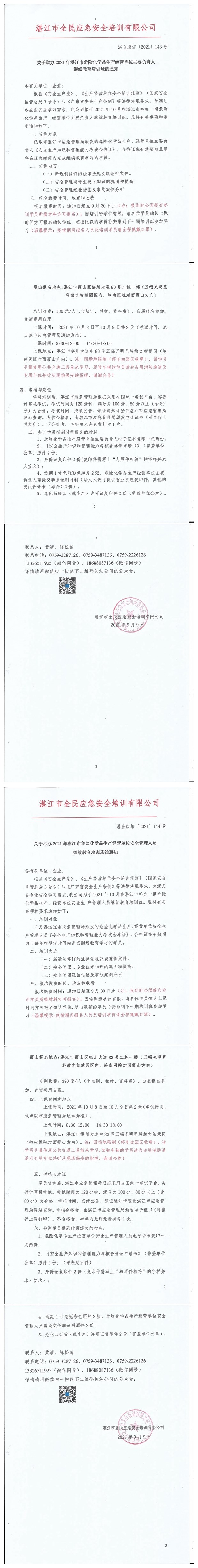 2021年10月8日-10月9日危險化學(xué)品生產(chǎn)經(jīng)營單位主要負責(zé)人及安全管理人員繼續(xù)教育培訓(xùn)班通知