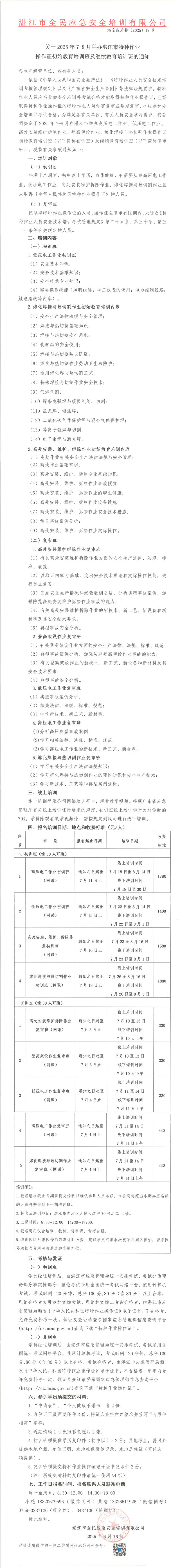 2025年7-8月高低壓電工作業(yè)、高處安裝維護(hù)拆除作業(yè)、登高架設(shè)作業(yè)、熔化焊接與熱切割作業(yè)初始教育培訓(xùn)班及繼續(xù)教育培訓(xùn)班的通知